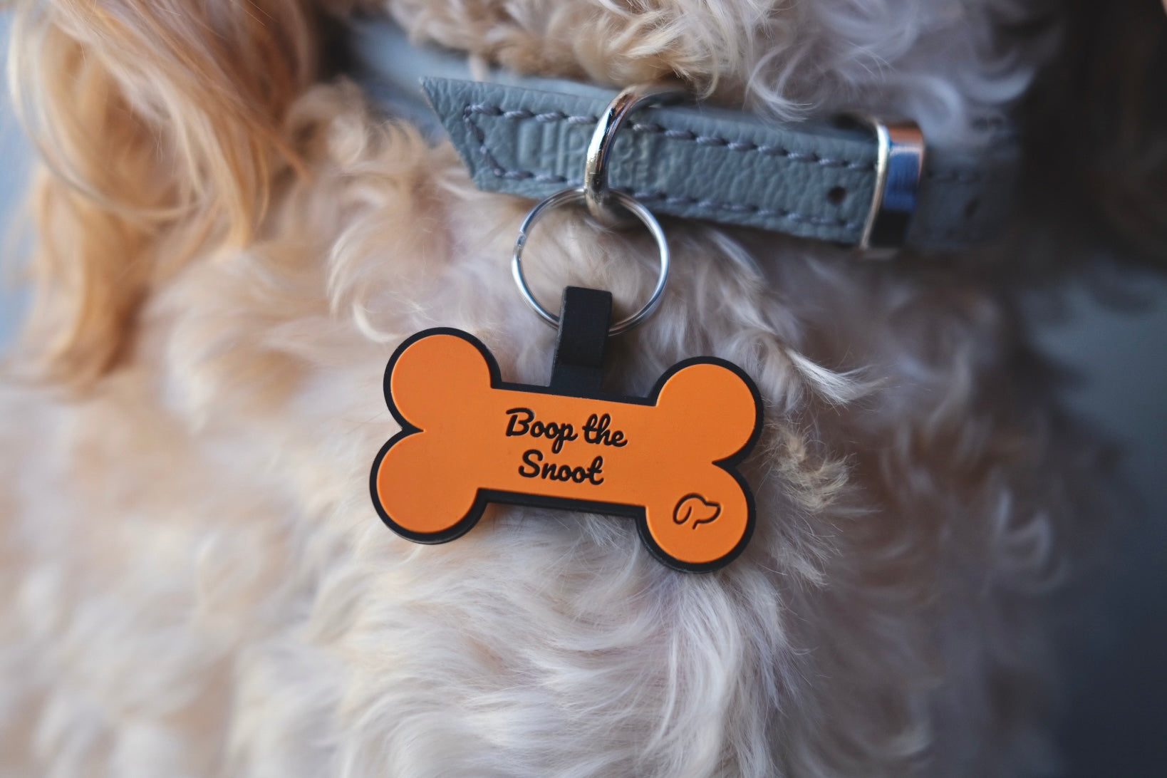 • Amazing new name tag for my dog! He gets scared of the noise his old metal tag made on his food and water bowls so the silicone is perfect and it suits him so much!